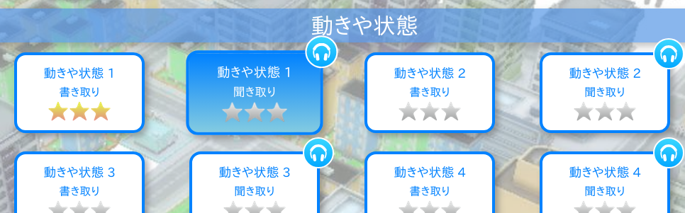 クリアしたステージが一目で分かるようになっており、良い成績でクリアするほど星が増えます。